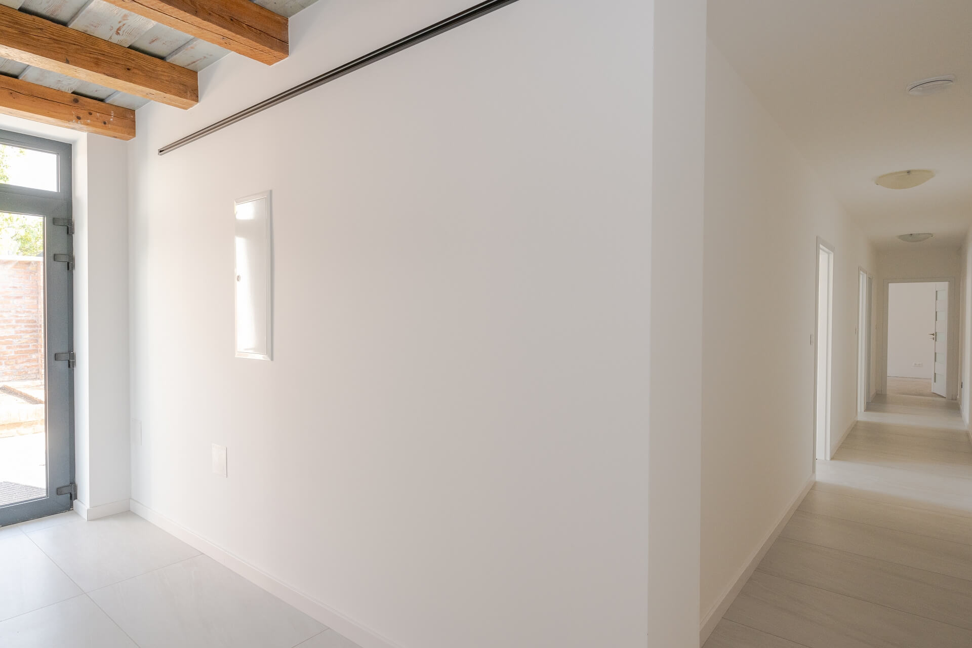 Pod systémové dosky je položená prídavná tepelná izolácia hr. 80 mm. Rozdeľovač a zberač sú na vnútornú jednotku tepelného čerpadla MITSUBISCHI ELEKTRIC EHST20D-YM9D pripojené potrubím Pe – Al – Pe uloženým v stene. Vnútorná jednotka
