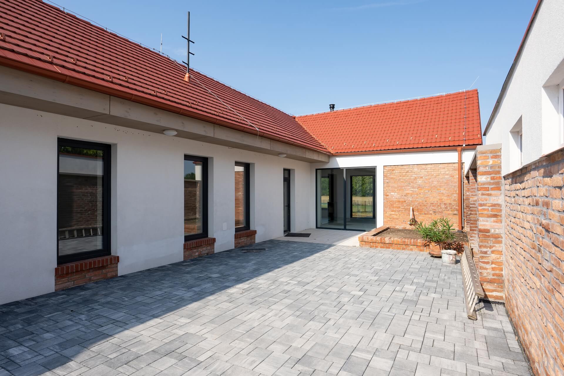 Dom je umiestnený za iným zrekonštruovaným rodinným domom (vo vlastníctve súčasného majiteľa popisovanej nehnuteľnosti). Na základe toho je dom úplne oddelený od ruchu ulice, je prístupný vlastnou vydláždenou komunikáciou uzavretou od ulice bránou na elektrický pohon (s diaľkovým ovládaním a bránkou ovládanou pomocou video vrátnika). Komunikácia vlastnícky patrí k popisovanému RD.
