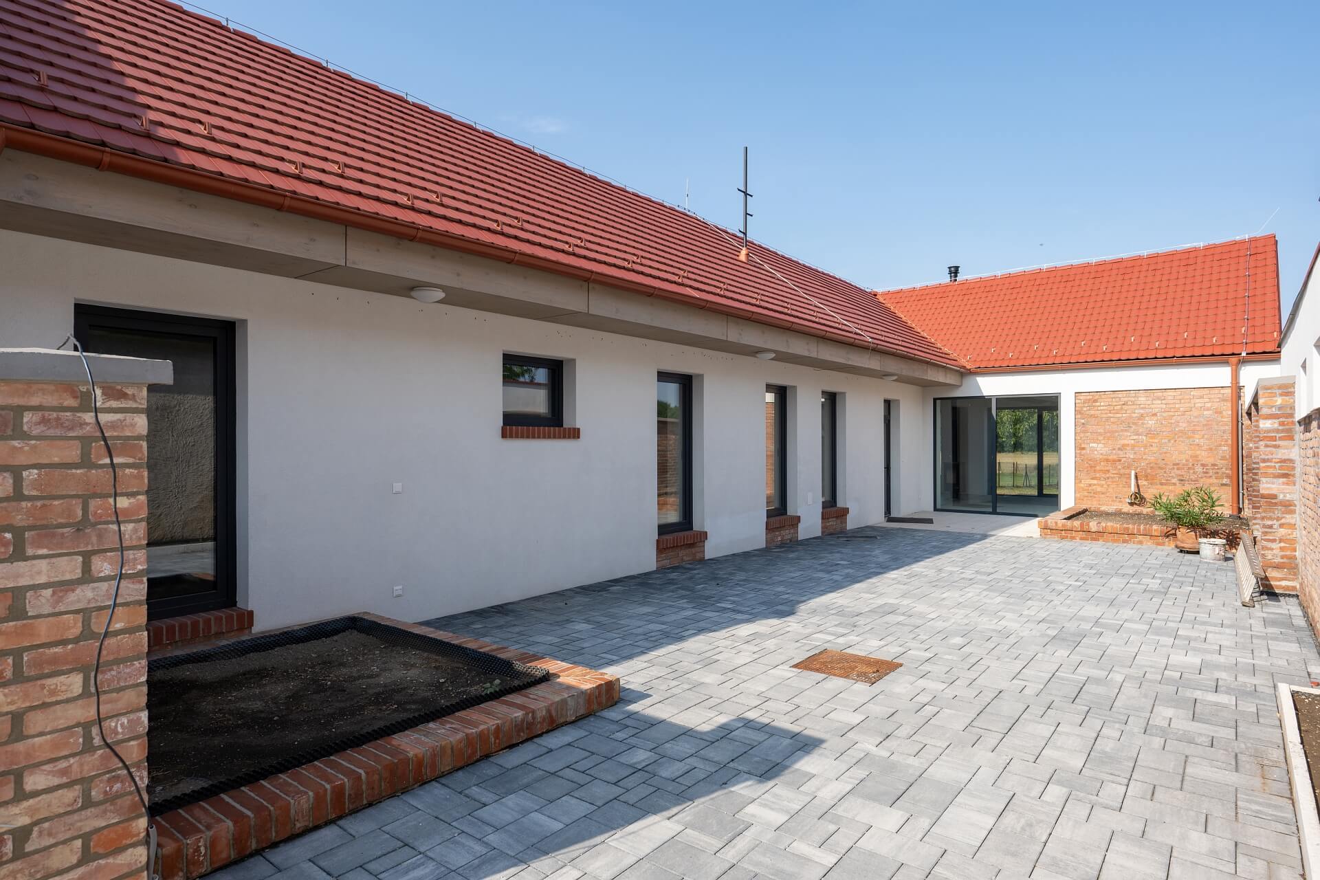 Pozemok dvora na ktorom je priestor pre parkovanie troch osobných vozidiel má plochu o výmere 107 m2. Na tejto ploche sú vybudované dva tehlové zvýšené záhony a uložená betónová dlažba.