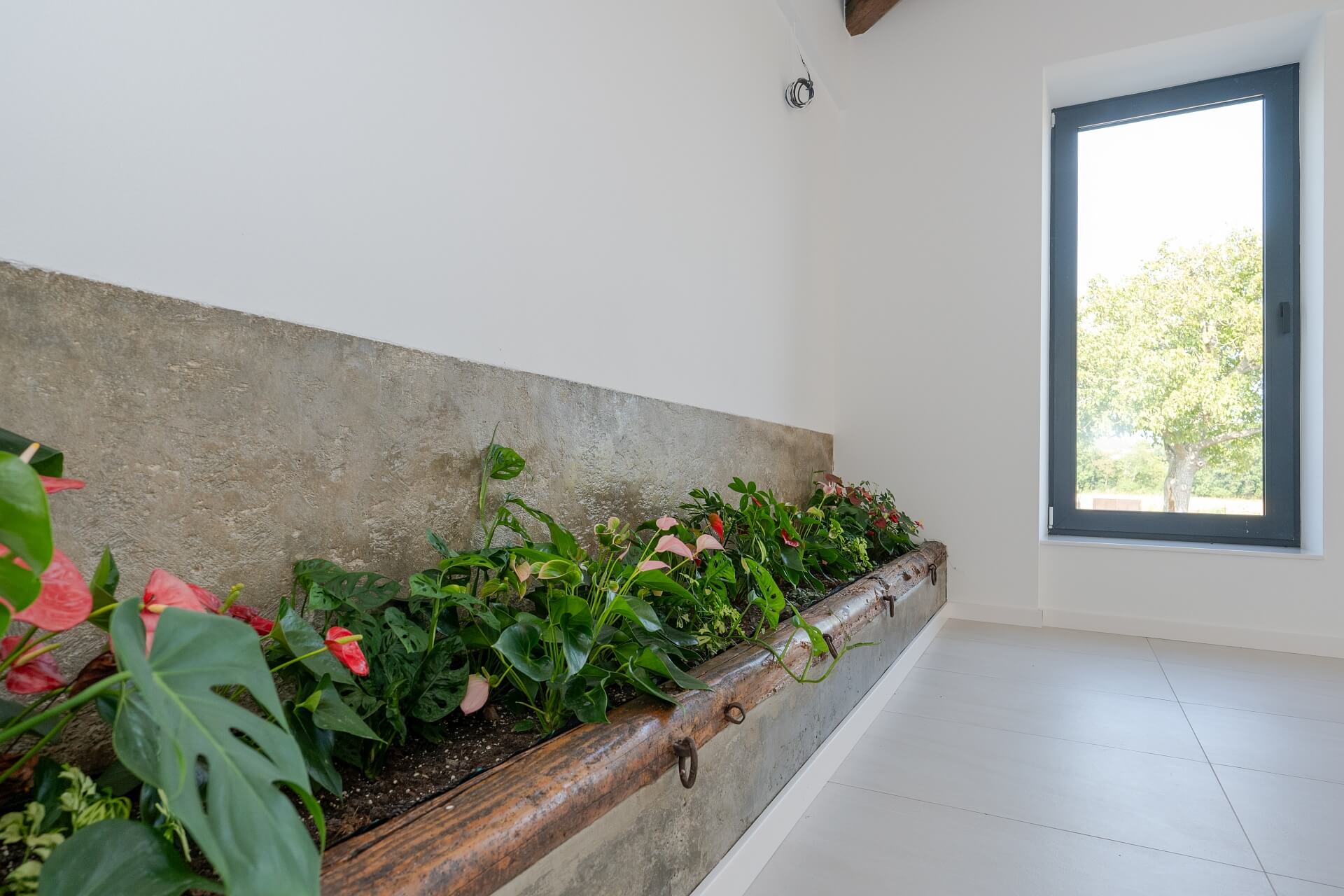 Na podlahovú nosnú vrstvu je použitý stabilný cementový poter s prídavnou rozptýlenou výstužou. Ako povrchová, nášľapná vrstva podlahy je použitá v komunikačných priestoroch, sociálnych zariadeniach kuchyni a jedálni veľkoformátová keramická dlažba. V ďalších častiach domu je povrchová úprava podlahy ponechaná pre realizáciu predstáv budúceho majiteľa.